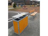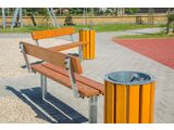 The bench is made from spruce wood, or oak should the client require. The wood is impregnated and coated with a triple layer of lacquer, which meets the terms and conditions of the EN71/3 Standard (safe for children's toys). The posts of the bench are made from structural steel, protected against corrosion by hot-dip galvanizing, which significantly prolongs the life of the play unit. The structures are fixed in a concrete bed. All fastening material is galvanized or stainless steel.