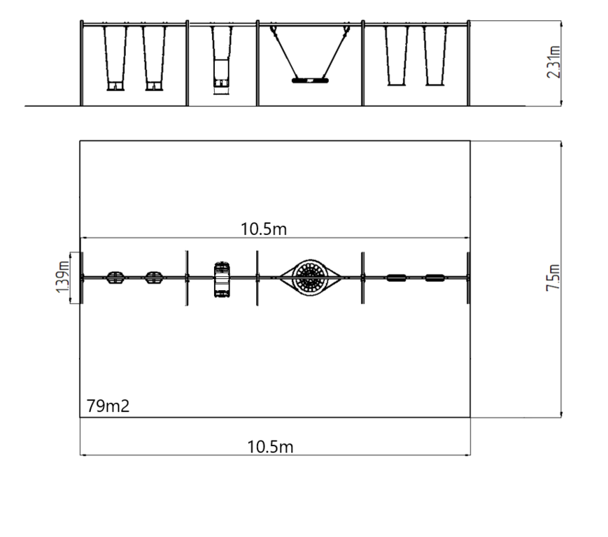 | Fall damping surface: | Rubber or gravel 79 m2 |