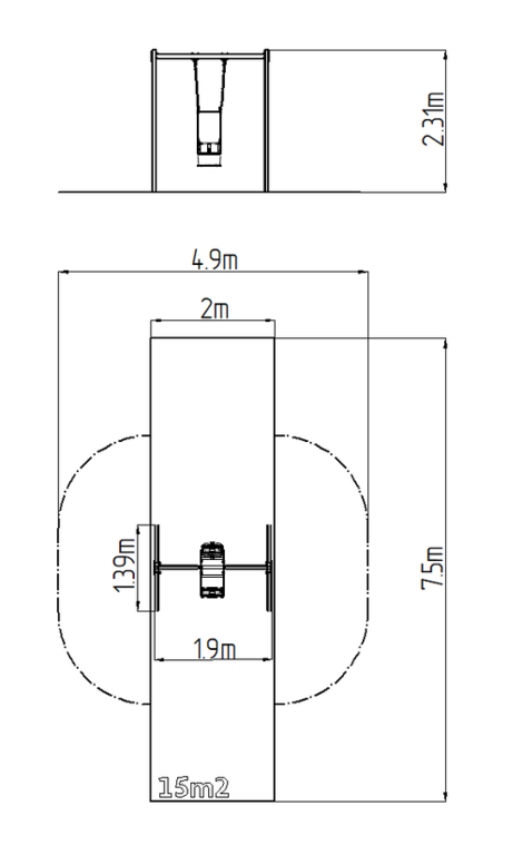 | Fall damping surface: | Rubber or gravel 15 m2 |
