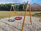 The swing is hung on a metal girder using galvanized chains. The "Bird's Nest" seat is made from polypropylene rope with heavy duty fibres. The hanging ropes are made using HERKULES material (16 mm thick ropes made from polypropylene with a steel internal core). All fastening material is galvanized or stainless steel.