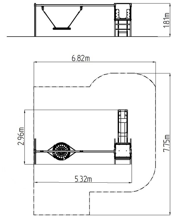 The load-bearing structure of the double-shaft is made of structural steel, which is protected against corrosion by zinc coating, which results in a very significant extension of the life of the play element or duplex powder coated with coat curing according to RAL to prevent corrosion. These structures are embedded in a concrete bed. All other metallic elements are also zinc coated or duplex powder coated with coat curing according to RAL to prevent corrosion.