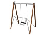 The support structure of the swing is made from structural steel, which is zinc coated or duplex powder coated with coat curing according to RAL to prevent corrosion and is fixed in a concrete bed. The Normal seat is made of aluminum, covered with a soft and comfortable rubber. The chains are stainless steel, resulting in a very prolonged service life of the product. All fastening material is galvanized or stainless steel.