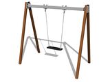 The support structure of the swing is made from structural steel, which is zinc coated or duplex powder coated with coat curing according to RAL to prevent corrosion and is fixed in a concrete bed. The Normal seat is made of aluminum, covered with a soft and comfortable rubber. The chains are stainless steel, resulting in a very prolonged service life of the product. All fastening material is galvanized or stainless steel.