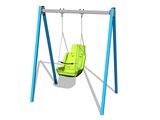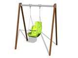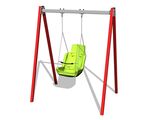 The support structure of the swing is made from structural steel, which is zinc coated or duplex powder coated with coat curing according to RAL to prevent corrosion and is fixed in a concrete bed. The Inclusive seat is made of HDPE with shock-absorbing bumper. The chains are stainless steel, resulting in a very prolonged service life of the product. All fastening material is galvanized or stainless steel.