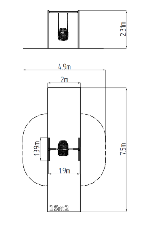 | Fall damping surface: | Rubber or gravel 15 m2 |