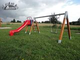 Seats and hinges are not part of the swing. It is necessary to buy a seat (1 piece) of your choice and curtains (2 pieces). Chain swing with a slide RH150D (f.h. 1 m) - there is no need for a fall zone up to the height of 1 m, a grass surface is enough. More information