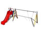 The slide is made from fibreglass. The surface of the slide is made from high quality HDPE plastic (high density coloured polyethylene, which is characterised by high colour stability, UV resistance but mainly safety as it doesn't break and therefore there is no danger of injury to children by sharp fragments). The swing is hung on a metal girder using galvanized chains. The swing seat is steel, covered with a soft and comfortable rubber. The platform is made from HPL (High-pressure laminate, which is characterised by high colour stability and water resistance). All fastening material is galvanized or stainless steel.
