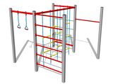 Fitness rack, climbing wall, 2x swinging rope loop, Swedish ladder, climbing net, climbing pole.