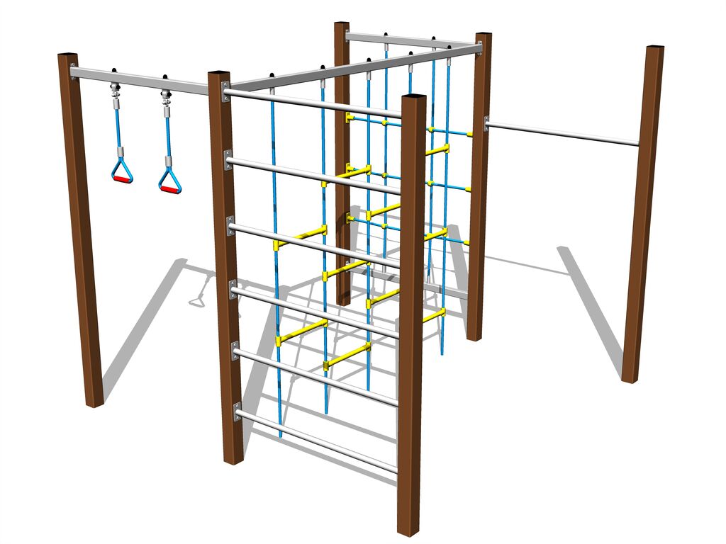 Swedish ladder, climbing pole, climbing wall, Fitness rack, climbing net, rope ladder.