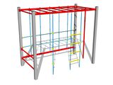 Climbing wall, 2x swinging rope loop, Swedish ladder, climbing net, climbing pole.