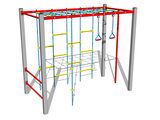 The climbing net and the rope ladder are made using HERKULES material (16 mm thick ropes made from polypropylene with a steel internal core) and they are connected with plastic joints. All fastening material is galvanized or stainless steel.