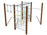 Fitness rack, climbing wall, 2x swinging rope loop, Swedish ladder, climbing net, climbing pole.