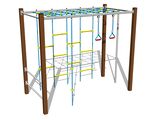 Climbing wall, 2x swinging rope loop, Swedish ladder, climbing net, climbing pole.