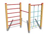The climbing set support structure ismade from thick glued wooden supports. This solution ensures maximum protection against cracking, which is common for products made from solid wood. The wooden supports are impregnated and coated with a triple layer of lacquer, which meets the terms and conditions of the EN71/3 Standard (safe for children's toys). The structures are anchored into the ground in steel plates, which are protected against corrosion by hot-dip galvanizing and fixed in a concrete bed. The anchors are fastened to the play unit with bolts and their structure ensures that they are not in direct contact with the ground. All other metal units are zinc coated or duplex powder coated with coat curing according to RAL to prevent corrosion.
