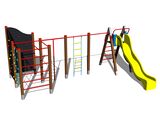 2x climbing wall, climbing net, Swedish ladder, climbing pole, fitness rack, climbing pole, fitness rack, rope ladder, 2x handle, sloping ladder with metal steps, slide. More information