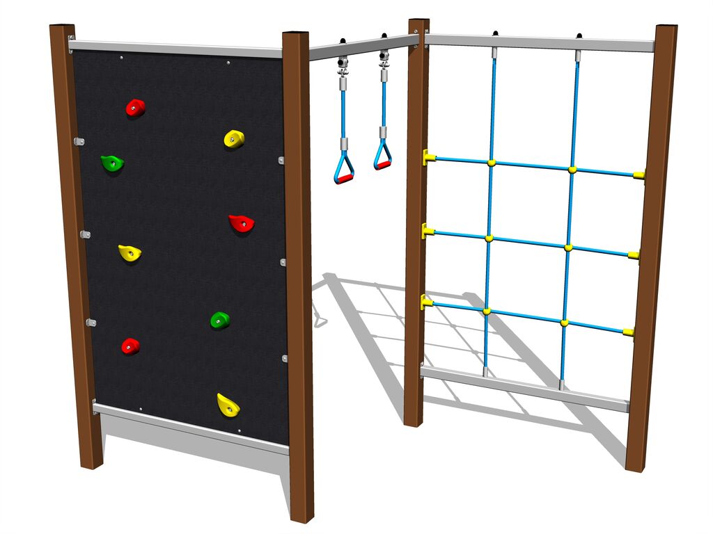 Climbing net, 2x Swinging rope loop, climbing wall. More information