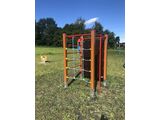 The climbing net is made using HERKULES material (16 mm thick ropes made from polypropylene with a steel internal core) and it is connected with plastic joints. The climbing wall is made from HPL (High-preSS88ure laminate, which is characterised by high colour stability, UV resistance and water resistance). The climbing holds are made from the mix of silica sand and epoxy resin, which ensures long life, colour preservation as well as skin friendly surface. All fastening material is galvanized or stainleSS88 steel.