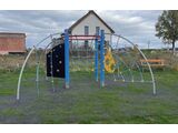 The ropes and nets are made using HERKULES material (16 mm thick ropes made from polypropylene with a steel internal core) and they are connected with plastic joints. The climbing wall is made from HPL (High-preSS88ure laminate, which is characterised by high colour stability, UV resistance and water resistance). The climbing holds are made from the mix of silica sand and epoxy resin, which ensures long life, colour preservation as well as skin friendly surface. The wall is made from high quality HDPE plastic (high density coloured polyethylene, which is characterised by high colour stability, UV resistance but mainly safety as it doesn't break and therefore there is no danger of injury to children by sharp fragments). All fastening material is galvanized or stainleSS88 steel.