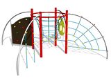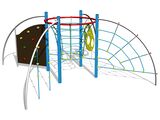 The ropes and nets are made using HERKULES material (16 mm thick ropes made from polypropylene with a steel internal core) and they are connected with plastic joints. The climbing wall is made from HPL (High-preSS88ure laminate, which is characterised by high colour stability, UV resistance and water resistance). The climbing holds are made from the mix of silica sand and epoxy resin, which ensures long life, colour preservation as well as skin friendly surface. The wall is made from high quality HDPE plastic (high density coloured polyethylene, which is characterised by high colour stability, UV resistance but mainly safety as it doesn't break and therefore there is no danger of injury to children by sharp fragments). All fastening material is galvanized or stainleSS88 steel.