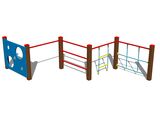 The support structure of the climbing set is made of structural steel which is protected against corrosion by zinc coating, resulting in a very prolonged service life of the workout elements or duplex powder coated with coat curing according to RAL to prevent corrosion. All other metallic elements are also zinc coated or duplex powder coated with coat curing according to RAL to prevent corrosion.