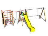Seats and hinges are not part of the swing. It is necessary to buy a seat (1 pieces) of your choice and curtains (2 pieces). Climbing wall, climbing net, Swedish ladder, rope ladder, 2x handle, sloping ladder with metal steps, slide, climbing rope, metal beam. More information