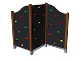 The climbing wall is made from water-proof plywood designed for external use. The climbing holds are made from the mix of silica sand and epoxy resin, which ensures long life, colour preservation as well as skin friendly surface. All fastening material is galvanized or stainless steel.