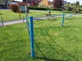 Courage trail LP201K - there is no need for a fall zone up to the height of 1 m, a grass surface is enough. We offer three color variants of the support structure - red, blue and brown. More information