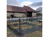 Courage trail LP301K - there is no need for a fall zone up to the height of 1 m, a grass surface is enough. We offer three color variants of the support structure - red, blue and brown.