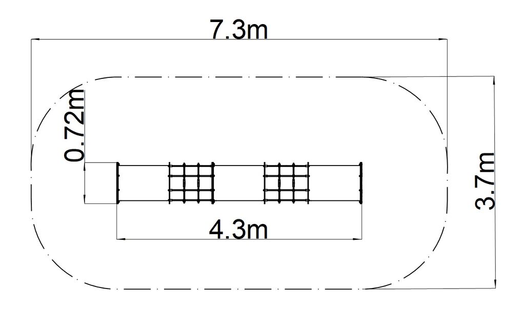 Plastic units are made of high quality HDPE plastic (high density coloured polyethylene, which is characterised by high colour stability, UV resistance but mainly safety as it doesn't break and therefore there is no danger of injury to children by sharp fragments). Rope tunnel is made using HERKULES material (16 mm thick ropes made from polypropylene with a steel internal core) and are connected with plastic or aluminium joints. Crawl tunnel is made from polyethylene which is UV stable and it is characterised by high colour stability. All fastening material is galvanized or stainless steel.