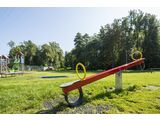 The seesaw beam is made from structural steel, which is zinc coated or duplex powder coated with coat curing according to RAL to prevent corrosion and is anchored to the support structure by carriage bolts. The support structure of the see-saw is steel; it is protected against corrosion by hot-dip galvanizing and fixed in a concrete bed.