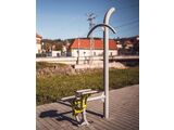 The handles are made of powder-coated steel tubes. The supporting column is made of a steel tube with a mounting flange at the bottom. The frame and tread are made of powder coated sheet metal. Rolling bearings are used for movable connections. Holes are sealed with steel elements at the ends. All fasteners are stainless.