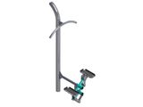 The handles are made of powder-coated steel tubes. The supporting column is made of a steel tube with a mounting flange at the bottom. The frame and tread are made of powder coated sheet metal. Rolling bearings are used for movable connections. Holes are sealed with steel elements at the ends. All fasteners are stainless.