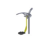 The handles are made of powder-coated steel tubes. The supporting column is made of a steel tube with a mounting flange at the bottom. The frame and tread are made of powder coated sheet metal. Rolling bearings are used for movable connections. Holes are sealed with steel elements at the ends. All fasteners are stainless.