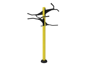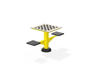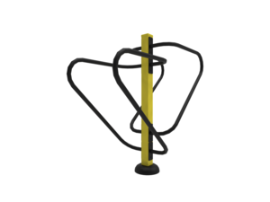 The frame is made of powder-coated steel tubes. The supporting column is made of a steel tube with a mounting flange at the bottom. Holes are sealed with steel elements at the ends. All fasteners are stainless.