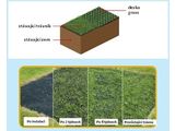 Grass pads are made from recycled plastic and lock together. Installation is simple: pads are laid on the lawn and underlaid with a plastic mesh preventing them from being pressed into the ground. The edges of the pads are secured with pins and covered with turf. The recycled plastic protects against slipping and is UV resistant. Furthermore, it contains a flame retardant that protects it against being vandalised. The pads prevent the lawn from being trodden down; grass growing through the pads is maintained in the standard way with a mower.