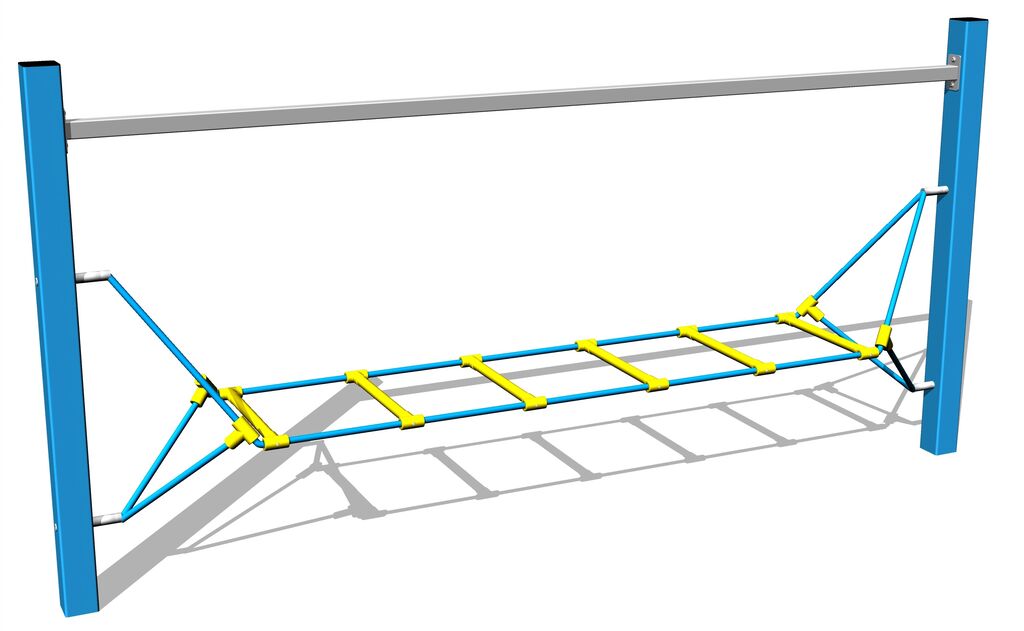 The ropes are made using HERKULES material (16 mm thick ropes made from polypropylene with a steel internal core) and are connected with plastic joints. All fastening material is galvanized or stainless steel.No comments or questions Monkey track Rope ladder - blue regarding this product. Do not hesitate to ask.