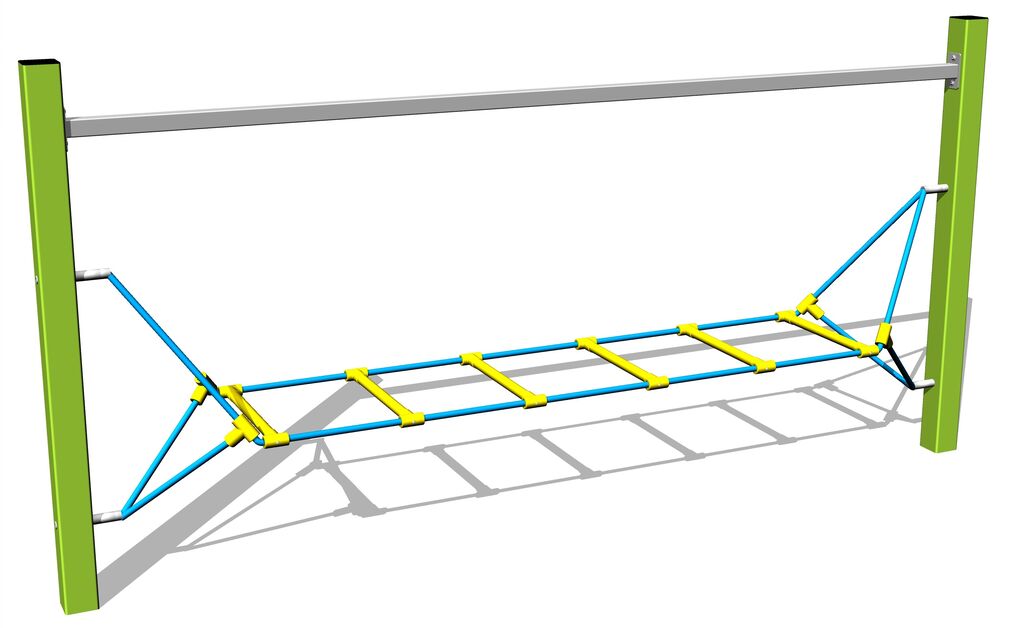The ropes are made using HERKULES material (16 mm thick ropes made from polypropylene with a steel internal core) and are connected with plastic joints. All fastening material is galvanized or stainless steel.No comments or questions Monkey track Rope ladder - lime regarding this product. Do not hesitate to ask.