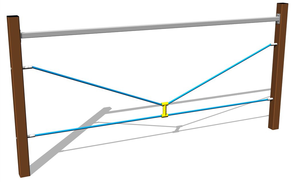 The ropes are made using HERKULES material (16 mm thick ropes made from polypropylene with a steel internal core) and are connected with plastic joints. All fastening material is galvanized or stainless steel.No comments or questions Monkey track V ropes - brown regarding this product. Do not hesitate to ask.