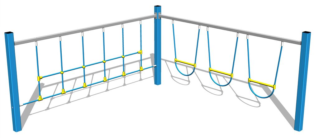 The ropes are made using HERKULES material (16 mm thick ropes made from polypropylene with a steel internal core) and are connected with plastic joints. All fastening material is galvanized or stainless steel.No comments or questions Monkey track - blue regarding this product. Do not hesitate to ask.