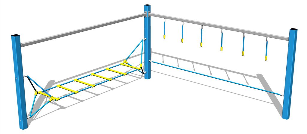 The ropes are made using HERKULES material (16 mm thick ropes made from polypropylene with a steel internal core) and are connected with plastic joints. All fastening material is galvanized or stainless steel.No comments or questions Monkey track - blue regarding this product. Do not hesitate to ask.