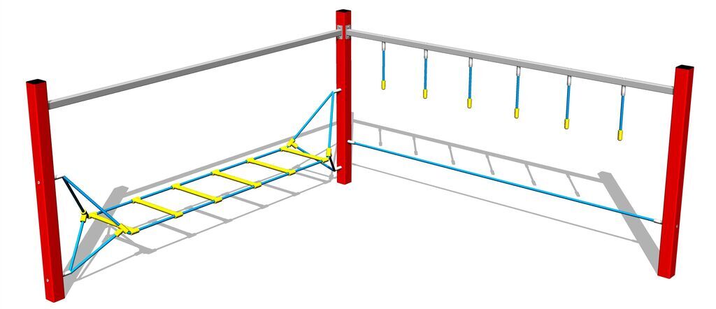 The ropes are made using HERKULES material (16 mm thick ropes made from polypropylene with a steel internal core) and are connected with plastic joints. All fastening material is galvanized or stainless steel.No comments or questions Monkey track - red regarding this product. Do not hesitate to ask.
