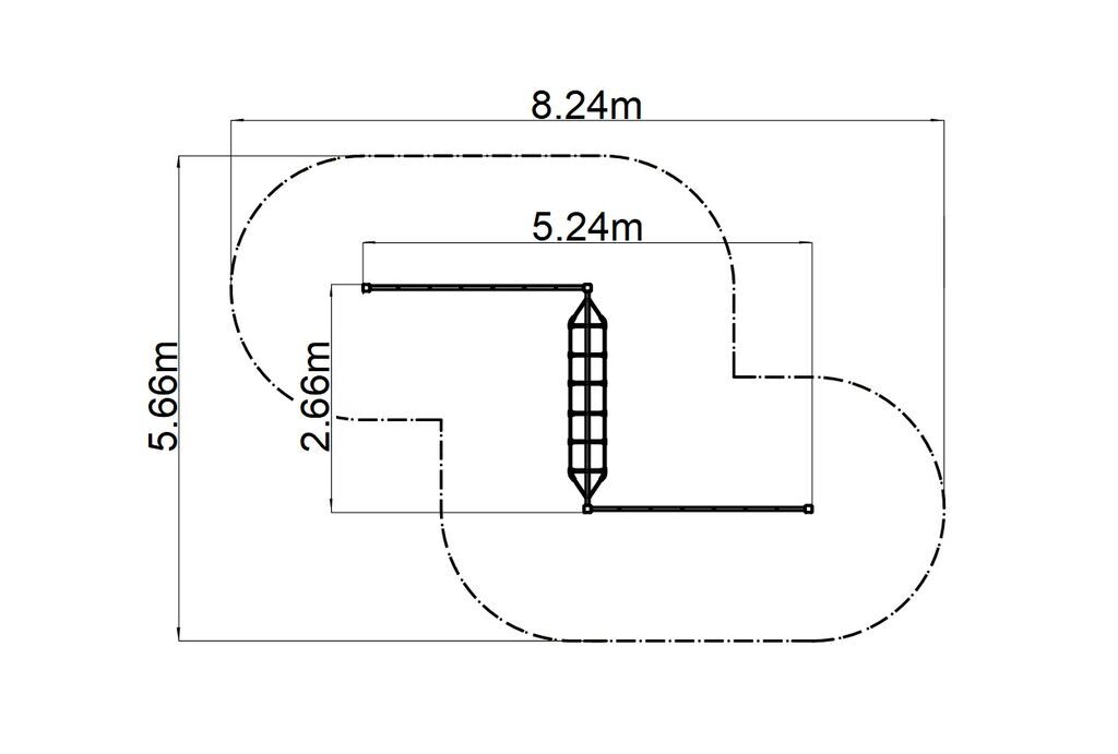 2x swinging rope loop, swedish ladder, climbing net, climbing pole.
