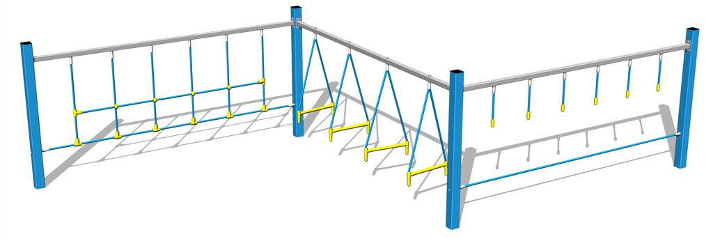 The ropes are made using HERKULES material (16 mm thick ropes made from polypropylene with a steel internal core) and are connected with plastic joints. All fastening material is galvanized or stainless steel.No comments or questions Monkey track - blue regarding this product. Do not hesitate to ask.