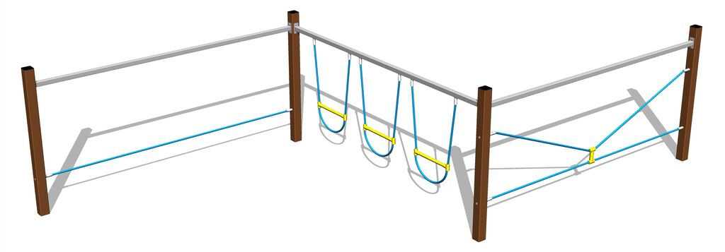 Rope bridge - metal (f.h. 1 m) - there is no need for a fall zone up to the height of 1 m, a grass surface is enough. We offer two color variants of the support structure - brown and silver.