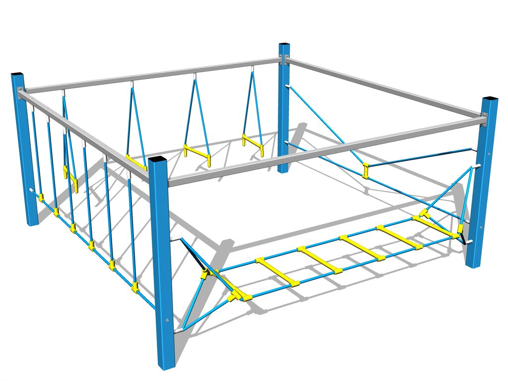 The ropes are made using HERKULES material (16 mm thick ropes made from polypropylene with a steel internal core) and are connected with plastic joints. All fastening material is galvanized or stainless steel.No comments or questions Monkey track - blue regarding this product. Do not hesitate to ask.