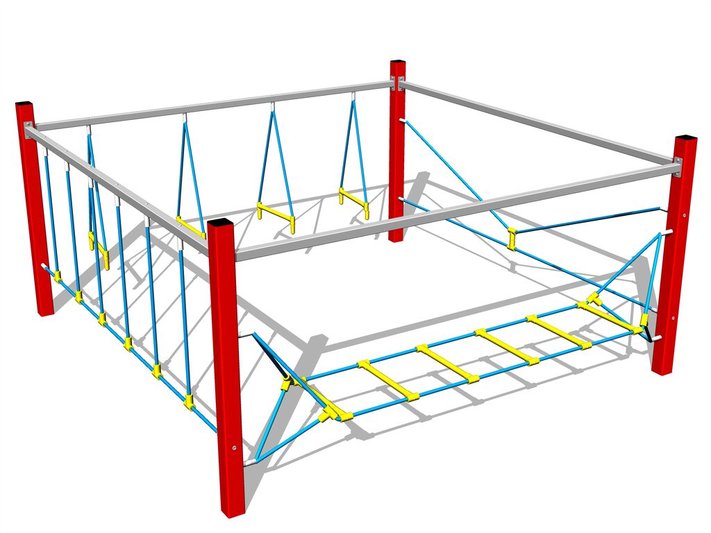 2x swinging rope loop, swedish ladder, climbing net, climbing pole.