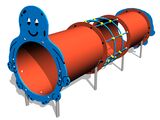 Plastic units are made of high quality HDPE plastic (high density coloured polyethylene, which is characterised by high colour stability, UV resistance but mainly safety as it doesn't break and therefore there is no danger of injury to children by sharp fragments). Rope tunnel is made using HERKULES material (16 mm thick ropes made from polypropylene with a steel internal core) and are connected with plastic or aluminium joints. Crawl tunnel is made from polyethylene which is UV stable and it is characterised by high colour stability. All fastening material is galvanized or stainless steel.