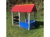 The benches, side walls and table are made from high quality HDPE plastic (high density coloured polyethylene, which is characterised by high colour stability, UV resistance but mainly safety as it doesn't break and therefore there is no danger of injury to children by sharp fragments). The roof is made from HPL (High-pressure laminate, which is characterised by high colour stability, UV resistance and water resistance). The platform is made from HPL (High-pressure laminate, which is characterised by high colour stability). All fastening material is galvanized or stainless steel.