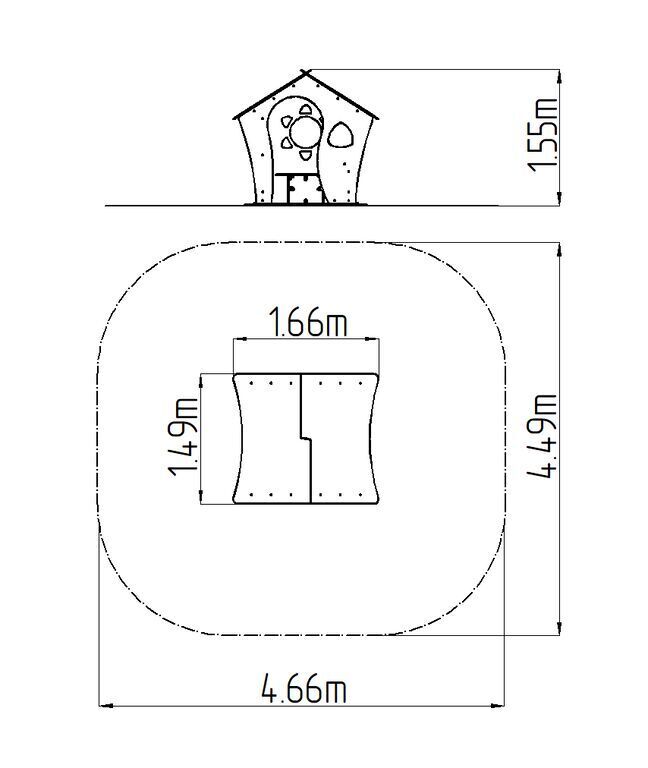 Playhouse - there is no need for a fall zone up to the height of 1 m, a grass surface is enough. More information