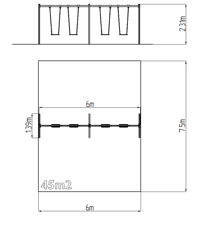 | Fall damping surface: | Rubber or gravel 45 m2 |
